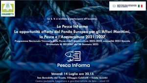 Alle ore 20:15 di venerdì 14 luglio si è tenuto un incontro per la presentazione del Programma e della piattaforma informativa sulle opportunità del FEAMPA 2021/2027 riservati agli operatori della pesca e dell’acquacoltura.